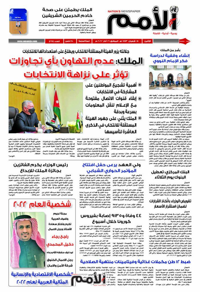 – أعلن وزير الدَّولة لشؤون الإعلام، النَّاطق الرَّسمي باسم الحكومة فيصل الشبول، أنَّ الحكومة بصدد تعديل عدد من أوامر الدِّفاع، بهدف تخفيف القيود على الأفراد والمنشآت، وذلك بالتَّزامن مع قرب حلول شهر رمضان المبارك.