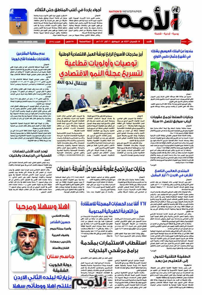 وتابع “مشددا جلالته على ضرورة تسهيل الوصول إلى وتبني التقنيات الزراعية الحديثة، للمساهمة في تحسين نوعية ووفرة الغذاء، وأهمية الدور الذي يلعبه القطاع الزراعي في تعزيز سبل كسب العيش لحوالي ربع السكان باعتباره أحد أكبر مصادر توليد فرص العمل والتشغيل للشباب والنساء في مناطق الريف والبادية”.