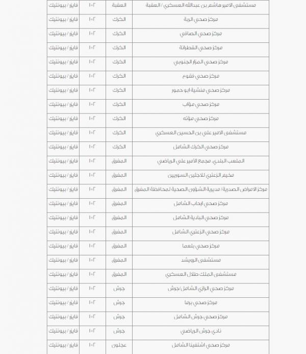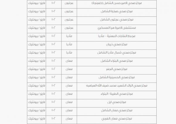 مراكز تطعيم كورونا بحسب نوع اللقاح (اسماء)