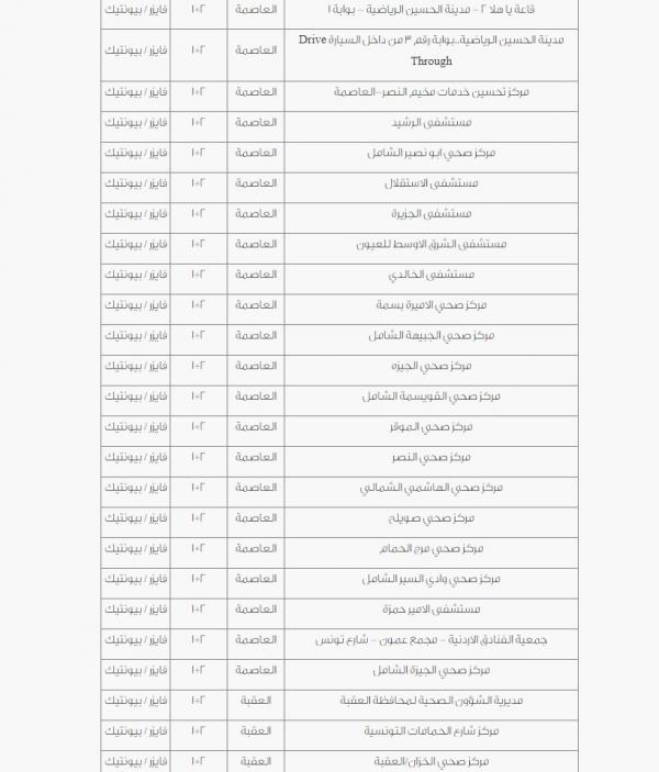 – جامعة الاسراء-الصالة الرياضية- البوابة الشمالية العاصمة 2 فايزر / بيونتيك