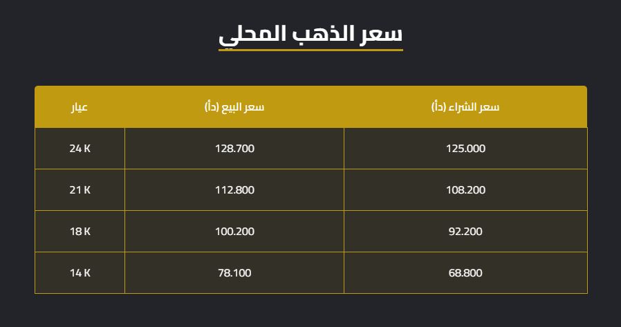 وكما بلغ سعر الغرام الواحد من الذهب عيارات 24 و18 و14 لغايات البيع من محالّ الصاغة 128.70 و100.20 و78.10 دينارا على التوالي.